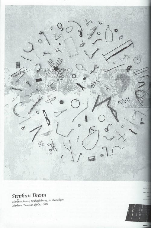Objet trouvé – allerdings aus einer sehr eingeschränkten Gruppe von Objekten: Gegenstände aus Metalldraht, die Brenns Aufmerksamkeit vor allem dann finden, wenn sie ihren Gebrauchswert bereits verloren und den Status einer Ruine angenommen haben. Mit diesen Fundstücken zu zeichnen – sie so zu arrangieren, dass sie eine regelmäßig begrenzte Fläche an einer Wand einnehmen – ist nicht zuletzt das Ergebnis einer Auseinandersetzung mit verschiedenen künstlerischen Disziplinen. Ausgebildet als Kunstschmied und Kunstglaser, wandte sich Brenn Anfang der 1990er Jahr vorübergehend der Malerei zu, sah in der Sinnlichkeit des Farbmaterials jedoch bald eine mögliche Fallgrube seiner künstlerischen Arbeit. So hat er die malerische Produktion dieser Zeit im Zuge einer selbstkritischen Betrachtung fast vollständig vernichtet und seinen Blick in der Folge auf das im Alltag bereits Vorhandene gerichtet.